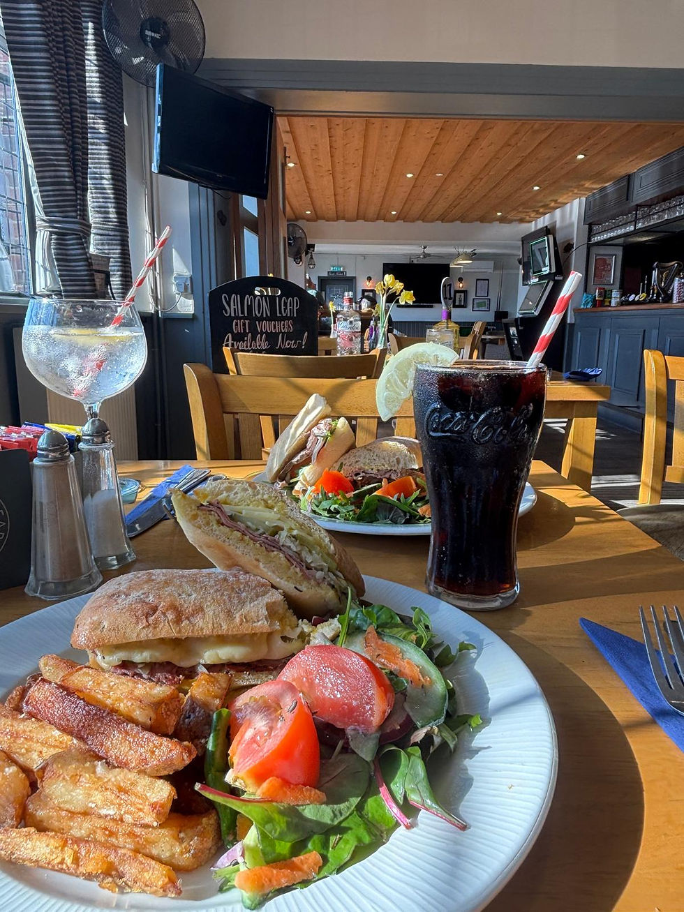 Take a look at the full menu here: https://www.thesalmonleaptotton.com/menus